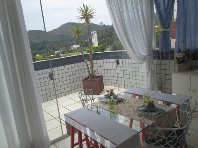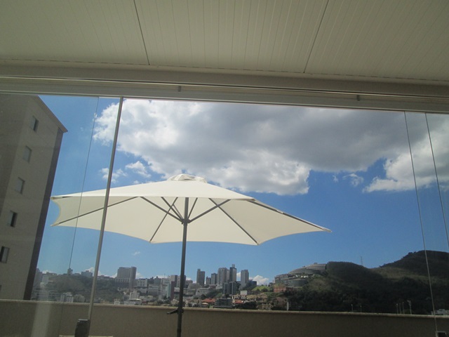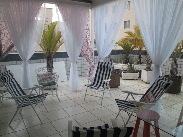 Esse biombo eu usei até o fechamento em blindex da varanda que antes era aberta, nos tirando a privacidade quando queríamos ficar lá à noite. O espaço também recebia muito vento.