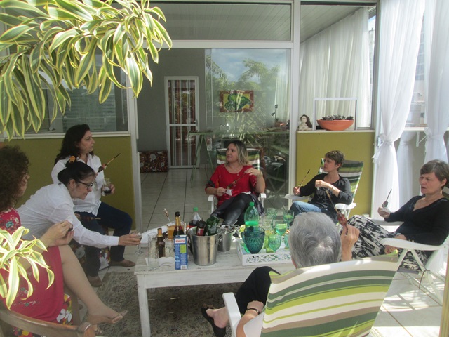 As pastilhas do balão também foram removidas. Nessa foto já havia feito uma "maquiada" na churrasqueira, mas sempre odiei essas pastilhas. Duas alunas queridas que nesse dia fizeram aulas de porta-guardanapos.