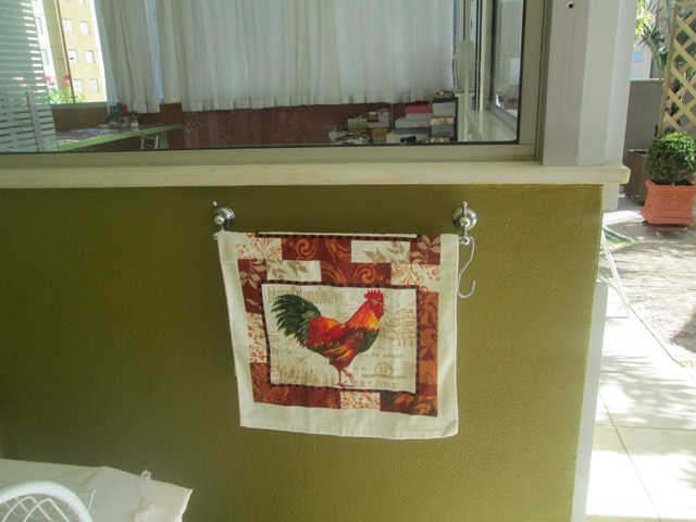 Tecido faz parte da minha vida e, inspirada nas cores da cortina da cozinha, escolhi as tintas, terracota, verde e cinza. Gostei do resultado.